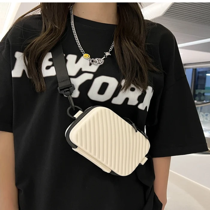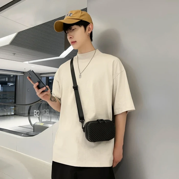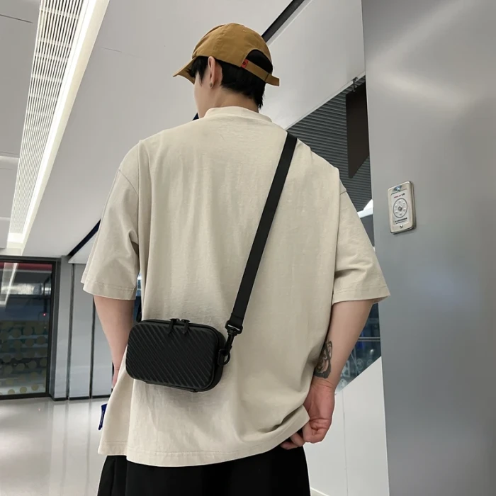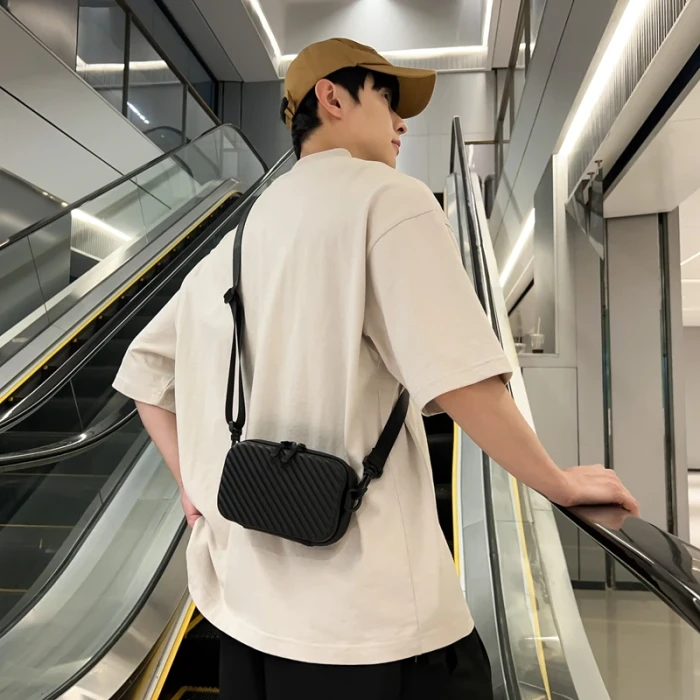 Simple Lightweight Box Bag Unisex Trendy Diagonal Striped Shoulder Bag Soft PU Leather Pressed Shell Men's Messenger Bag