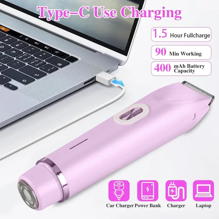 এই ডিভাইসে রয়েছে 2-in-1 ডুয়াল হেড সিস্টেম, একটি ট্রিমিং ও অন্যটি স্মুথ শেভিংয়ের জন্য। প্রথমে বড় লোম ছোট করে কেটে পরে ত্বক মসৃণভাবে পরিষ্কার করা যায়। রিচার্জেবল ব্যাটারি থাকায় বারবার ব্যাটারি বদলাতে হয় না। একবার ফুল চার্জে মিনিমাম ৫/৭ দিন পর্যন্ত ব্যবহার করা যায়। ইউএসবি চার্জিং সুবিধায় পাওয়ার ব্যাংক, ল্যাপটপ বা চার্জার দিয়ে চার্জ দেওয়া যায়। স্টেইনলেস স্টিল ও স্কিন-ফ্রেন্ডলি ব্লেড ত্বকে আরামদায়ক অনুভূতি দেয়। র্যাশ, রেজর বার্ন বা ইনগ্রোন হেয়ারের ঝুঁকি কম থাকে। মুখ, আন্ডারআর্ম, হাত, পা, বুক ও শরীরের বিভিন্ন অংশে ব্যবহারযোগ্য। নারী ও পুরুষ উভয়ের জন্য এটি উপযোগী একটি গ্রুমিং ডিভাইস। ওয়াটারপ্রুফ হওয়ায় শুকনো ও ভেজা দুইভাবেই ব্যবহার করা যায়। হালকা ও কমপ্যাক্ট হওয়ায় সহজে ব্যাগে বহন করা যায়। কম শব্দে চলে, তাই ব্যবহার করা সহজ, আরামদায়ক ও সুবিধাজনক। সাথে থাকবে ০২ বছরের রিপ্লেসমেন্ট গ্যারান্টি।